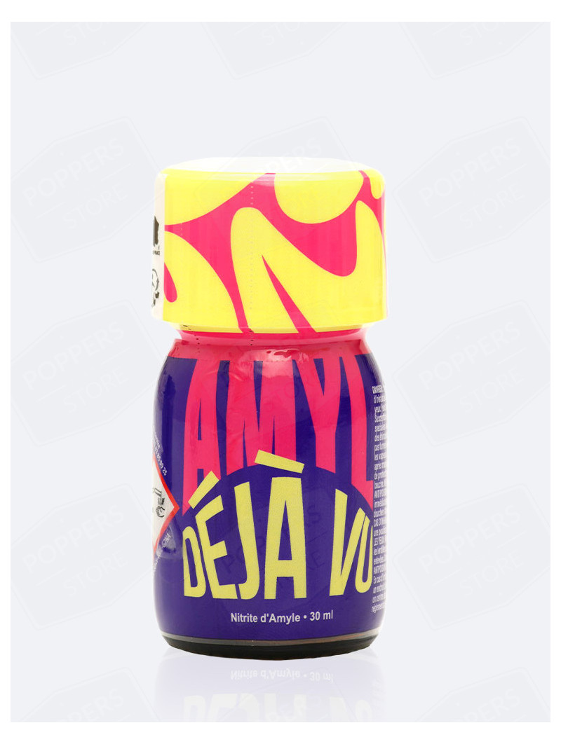 Amyl Déjà Vu 30 ml figure parmi les références les plus puissantes du marché avec son pur nitrite d'amyle fabriqué en France. L'intensité maximale de 5/5 et le goulot extra large procurent des effets extrêmes et vigoureux réservés exclusivement aux connaisseurs expérimentés.